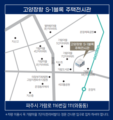 견본주택 위치는 파주시 가람로 116번길 111(와동동 1482)이며, 혼잡을 피하기 위해 미리 일정을 예약하고 방문하는 것이 좋습니다.