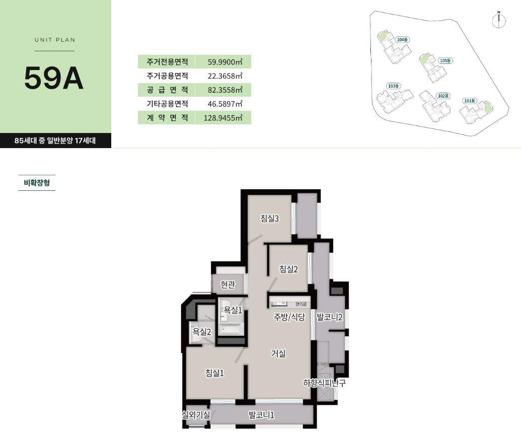 - 59A㎡: 약 11억 9,340만원 ~ 12억 7,080만원