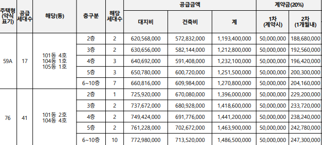 - 76㎡: 약 13억 9,600만원 ~ 15억 3,930만원