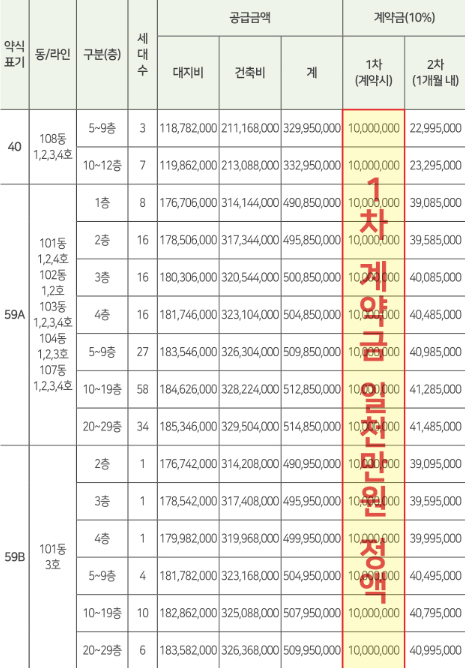 - 합리적인 분양가와 층별 선택 가능