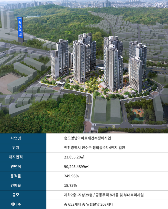 송도역 한신더휴 프레스턴은 인천 연수구 청학동 96-4번지에 위치한 총 652세대 규모의 대단지 아파트로, 지하 2층부터 지상 29층까지 총 8개동으로 구성됩니다. 이 중 208세대가 일반분양 대상이며, 나머지는 조합원 및 특별공급 세대로 배정되어 있습니다. 2028년 4월 입주 예정으로, 프리미엄 입지와 쾌적한 환경을 모두 갖춘 신축 아파트입니다.