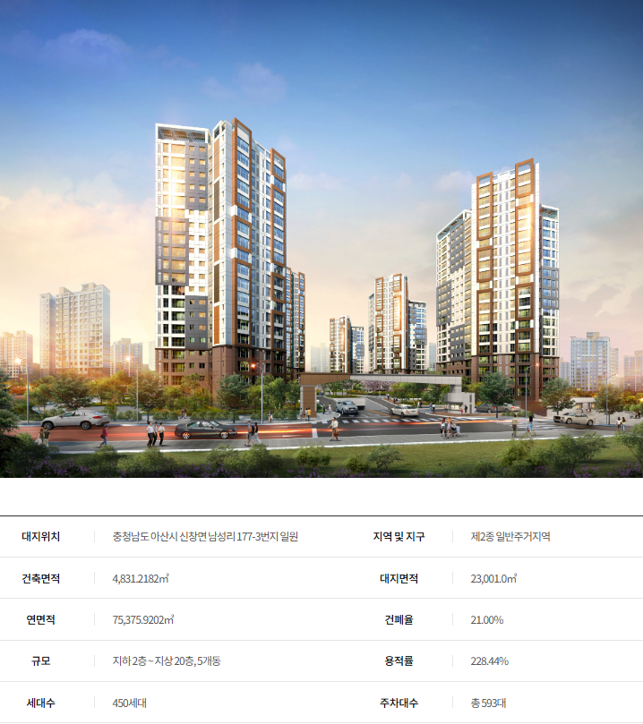 단지는 신창읍 중심 생활권에 위치하며, 인근에 롯데마트, 농협하나로마트, 보건지소 등 생활 인프라가 잘 갖춰져 있습니다. 신창초·신창중·신창고 등 교육시설이 도보권에 위치해 있으며, 인근 KTX 천안아산역, 신창역 이용도 용이합니다. 향후 아산 인주지구, 탕정2지구 등 개발 호재도 예정돼 있어 장기적 가치 상승이 기대됩니다.