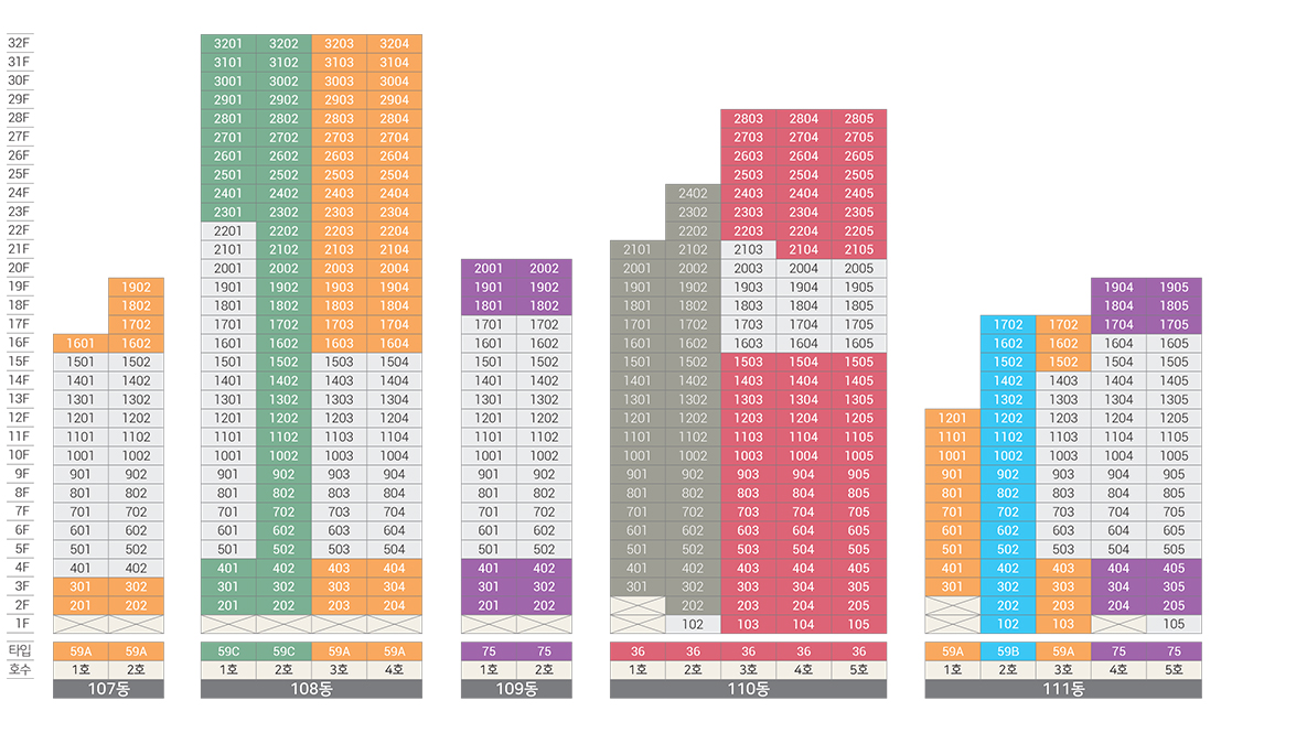 • 건축규모 : 지하 3층부터 지상 32층까지 총 11개 동
